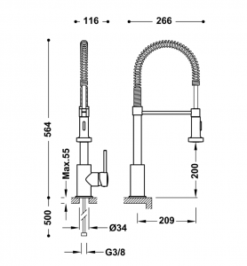 Grifo monomando con ducha extraíble con 2 tipos de chorro para cocina industrial